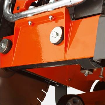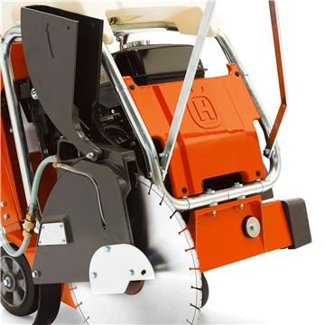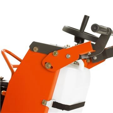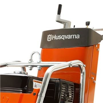 Husqvarna's highly versatile FS 413 is a compact petrol push floor saw developed with a clear focus on your comfort. Ideal for small to mid-sized service and repair jobs in asphalt and concrete. Cuts up to 189 mm deep. Shown with optional water tank. Low vibrations Engine and blade shaft mounting system increases comfort and gives excellent cutting performance. Low maintenance The IntelliSeal blade shaft system allows for a minimum of 250 maintenance-free hours without daily greasing of bearings. Easy to adjust the blade Spring-assisted screw feed facilitates blade adjustment in and out of the cut. Easy to transport Compact saw that is easy to lift. Adjustable handles Provides a closer and more comfortable position to the cutting side for easier alignment and straighter cuts. Handle can also be folded for transport. Clear depth indicator Adjustable for all blade diameters.