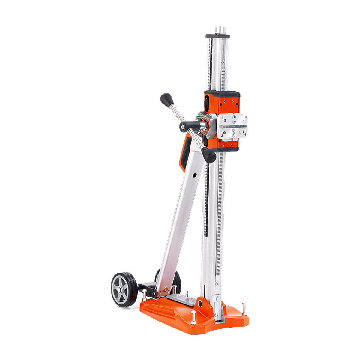 DS 500 is a medium-size drill stand, suitable for a wide range of professional core drilling operations. Combines high stability and sturdiness with surprisingly low weight. The quick connection features and low weight make handling easy and efficient. The slim-design carriage with optimized gear ratio works exceptionally well with Husqvarna DM 280, DM 340 and similar high-powered 1-phase drill motors. Recommended for drill bit diameters up to 400 mm.