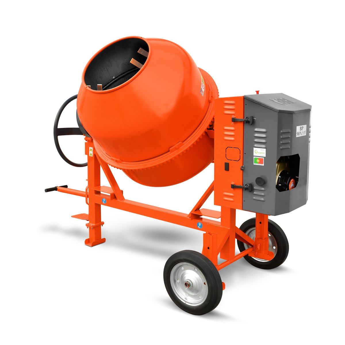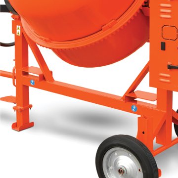 Drum with Reinforced Opening and 3 Double Mixing Blades Handles for Shifting Lubrication Point Cast Iron Gear Ring Poly - V Cast Iron and Trapezoidal Belt Forklift Pockets Reinforced Structure