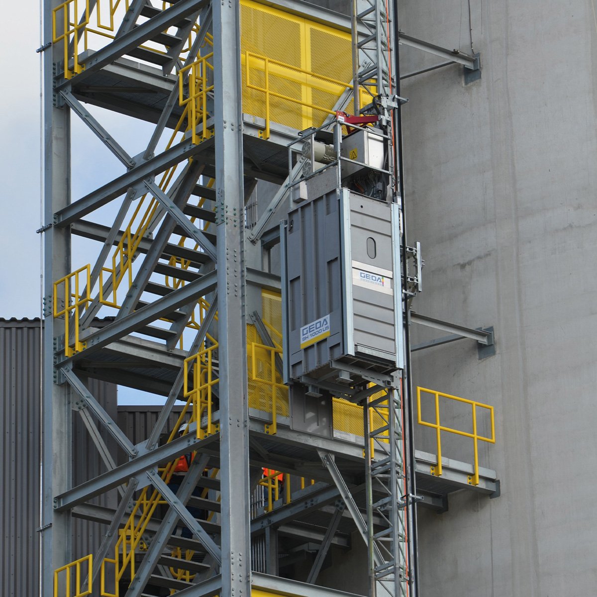 The GEDA SH series provides a robust and reliable hoisting solution for the cement and mining industries, where efficient vertical access is critical to maintaining uninterrupted production. Designed to handle heavy-duty tasks in challenging environments, GEDA SH hoists are ideal for transporting personnel and materials safely and efficiently-even at significant heights such as heat exchanger towers.These enclosed industrial hoists feature high load capacities and are fully configurable to meet the specific operational demands of cement plants and mining operations. Whether exposed to intense heat, abrasive dust, or corrosive elements, the GEDA SH series is built to perform under extreme conditions.GEDA's shaft-free design helps prevent dust accumulation-a common concern in cement facilities-while a wide range of protective features ensures long-term durability and system integrity.