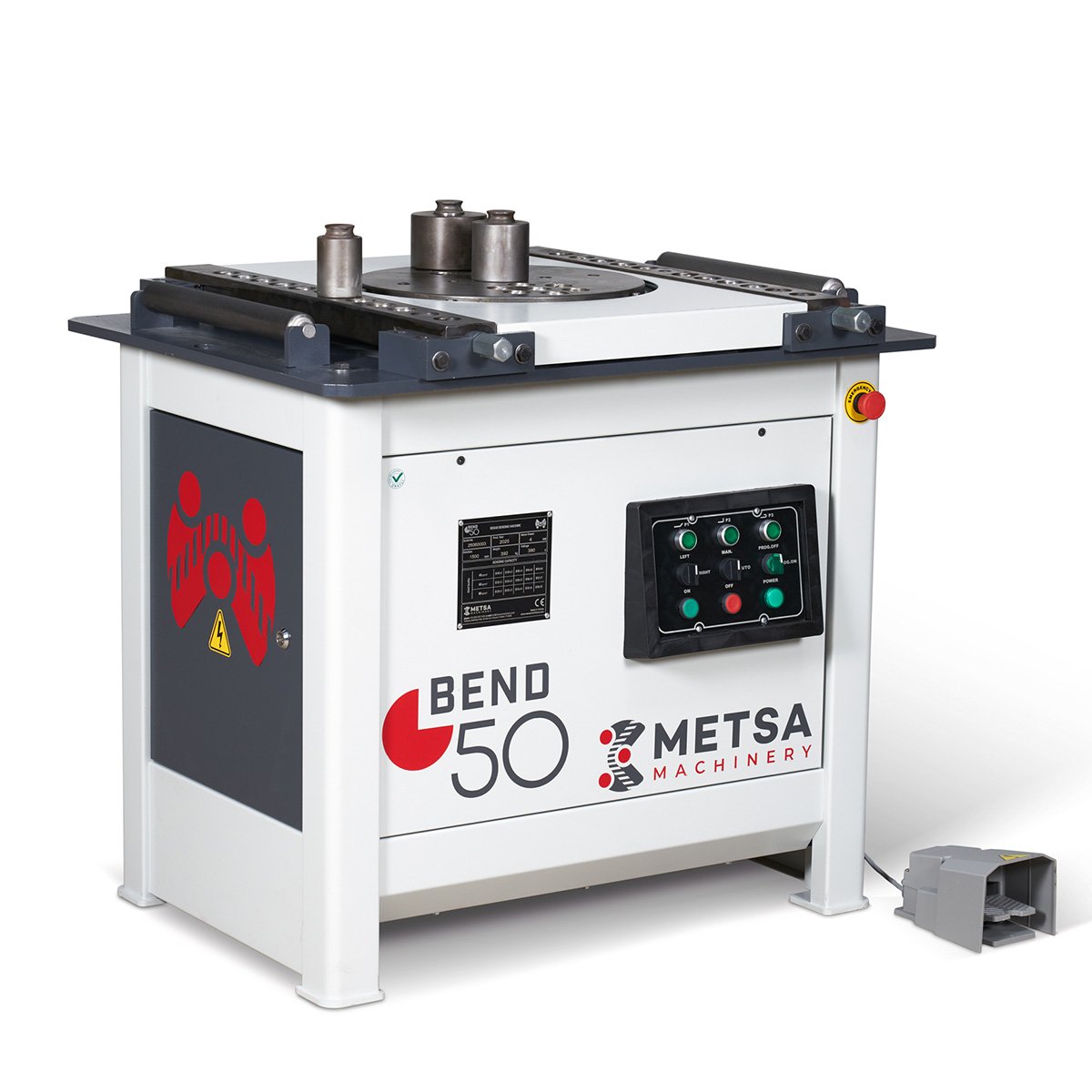 <p><strong>METSA MACHINERY BEND 50 - Heavy-Duty Rebar Bending Machine for Construction SitesPrecision, Power, and Reliability - Built for Demanding Job Sites </strong>Engineered in Turkey with over 50 years of industry expertise, the METSA MACHINERY BEND 50 is the ultimate rebar bending solution for construction professionals. Built to deliver unmatched accuracy and long-lasting performance, this robust machine is a must-have for any high-efficiency worksite. <strong>Dual-Direction Bending for Maximum Flexibility </strong>Designed for versatility, the BEND 50 features both clockwise and counterclockwise rotation capabilities. It comes equipped with a comprehensive set of interchangeable bending dies, making it perfect for executing bends with consistent precision. <strong>Industrial-Grade Durability </strong>Constructed using CNC-machined steel components and treated with advanced heat processing, the BEND 50 is built to endure harsh working conditions while maintaining structural integrity and operational consistency over years of use. <strong>Smart Automation for Enhanced Productivity </strong>The integrated mechanical and electrical automation system streamlines the bending process, allowing for fast and highly accurate angle formation-boosting overall job site productivity. <strong>Flawless Angle Calibration </strong>With specialized pin, hook, and miter adjustment features, this machine ensures every bend meets exact specifications, making it ideal for professional-grade reinforcement work. <strong>Rust-Resistant, Corrosion-Proof Finish </strong>A durable electrostatic powder coating shields the machine from rust, dust, and environmental wear-ensuring reliable operation even in challenging weather conditions. <strong>Built-In Safety Features for Operator Protection </strong>The BEND 50 prioritizes workplace safety with its emergency stop system, foot pedal control, and intuitive safety buttons-offering complete operational control and peace of mind for the operator. <strong>Efficient Maintenance & Easy Spare Part Availability </strong>Backed by METSA MACHINERY's advanced engineering, the machine includes smart electronic control systems that simplify maintenance. Cost-effective spare parts and prompt service support ensure minimal downtime.</p>