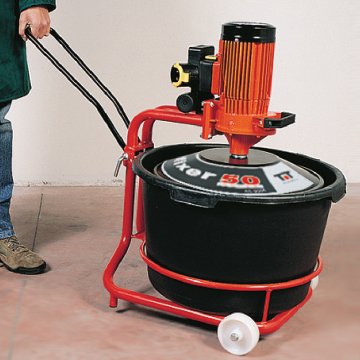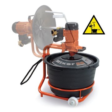 The material must be poured directly on the black plastic protection. And then, centrifuged for the right mixing TT Power The logo which identify the uniqueness of the electric motors manufactured by Battipav, which is the only company in the cutting machines industry able to develop and manufacture the electric motors that power their saws. Automatic mixing It mixes up to 50 kg of material independently. Save time and money! Homogeneous paste Homogeneous paste and without lumps. Safety An automatic safety switch prevents the motor to start when the mixing head is completely raised up. Easy to handle The machine is easy to move.