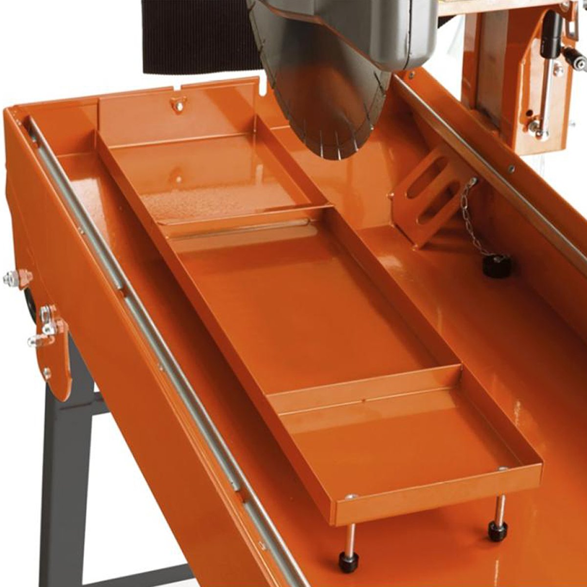 TS 300 E is an efficient universal masonry saw with high cutting capacity for all kinds of bricks and building blocks. With this table saw you get a maximum cutting depth of 100 mm in one pass or up to 150 mm by step cutting. You can easily plunge or bevel cut at 45 degrees for maximum versatility. The robust single-piece frame with integrated conveyor rails gives great rigidity and provides longer product life. Efficient slurry sedimentation The collection tray enables efficient slurry handling for long pump life. Easy set-up One person can set up the machine, thanks to the semi-automatic folding legs. Versatile Can plunge and bevel cut at 45° or 90° for maximum versatility. Sturdy and reliable motor Provides long product life. Easy transport and handling Thanks to the four wheels. Heavy duty water pump The high quality water pump greatly extends product life. Wide span of cutting depths The precise height adjustment of the cutter head allows deep step cutting. Easy replacement of water pump Thanks to the electrical quick connection. Protected guide rails The solid frame protects the guide rails from external impact.